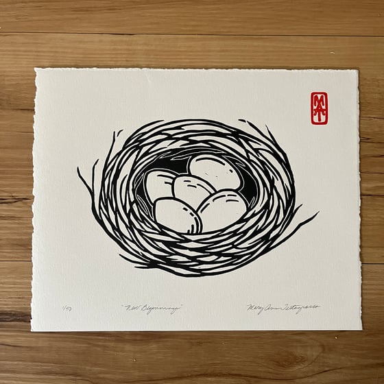 Golden Eggs (hand painted linocut print) (ONLY ONE LEFT)
